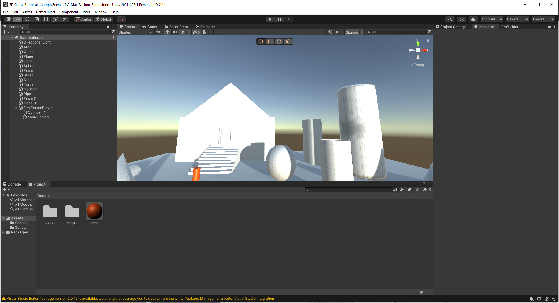 3D Greyboxing using ProBuilder in Unity 2021.3.0f1